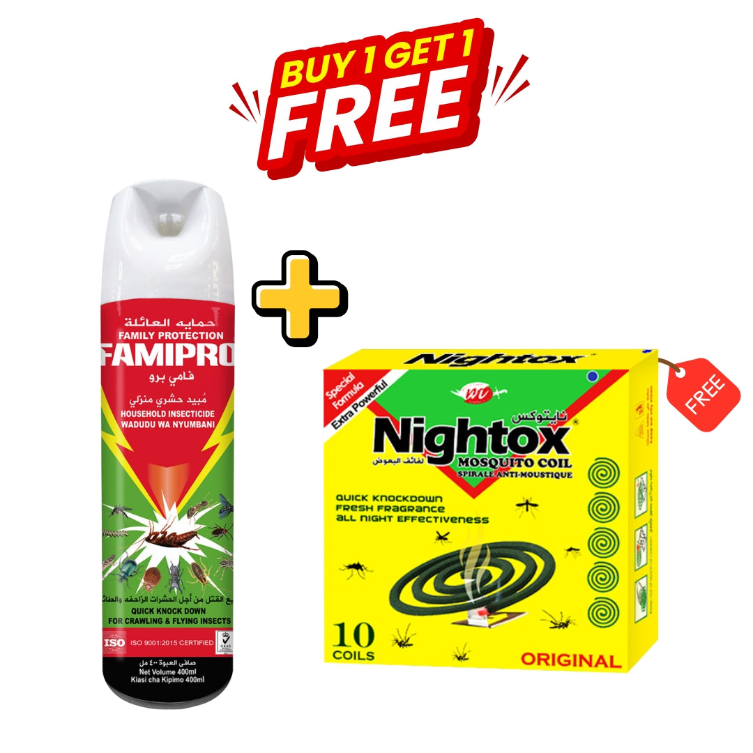 Buy 1 Get 1 FREE: Famipro Insect Killer Spray 400ml + FREE Nightox Mosquito Coil (10pcs/Box)