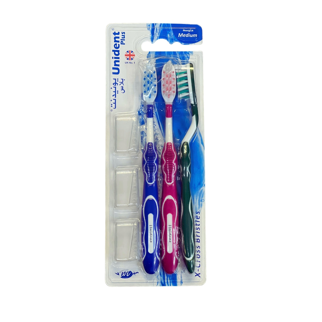 Brosse à dents Unident à poils XCross souples – Pack de 3 pièces